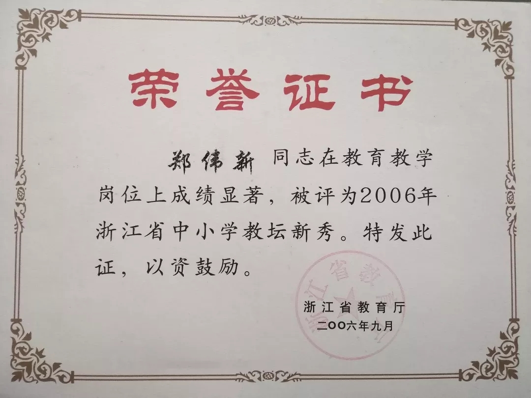 时光荏苒,2004年,郑伟新通过竞聘踏入了兰溪市第一中学的大门,开启了第二个十年的征程。对于缺乏高中教学经验的他来说,这又是一次全新的挑战,要在全市顶尖的高中站稳脚跟,谈何容易。报到那天,时任校长的一句“兰一中的讲台不是那么好站的”,如同警钟长鸣,激励着他不断向下扎根,深耕思政教育这片沃土。2006年,他凭借出色的教学育人表现,荣获浙江省中小学教坛新秀称号。此后,他更是干劲十足,潜心钻研,不断探索如何让思政课焕发新的活力,让课堂更加生动有趣,吸引学生积极参与。这一探索,便是又一个十年的光阴。