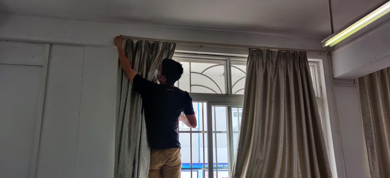 在年轻党员冉光迅同志的带领下,入党积极分子们鼓足干劲,大家齐动手,有序分工,相互配合,不到半个小时就将窗帘拆卸整理完毕。清洗好的窗帘第一时间晾在通风处,并及时安装到窗户上,未对教师们的正常办公造成影响。