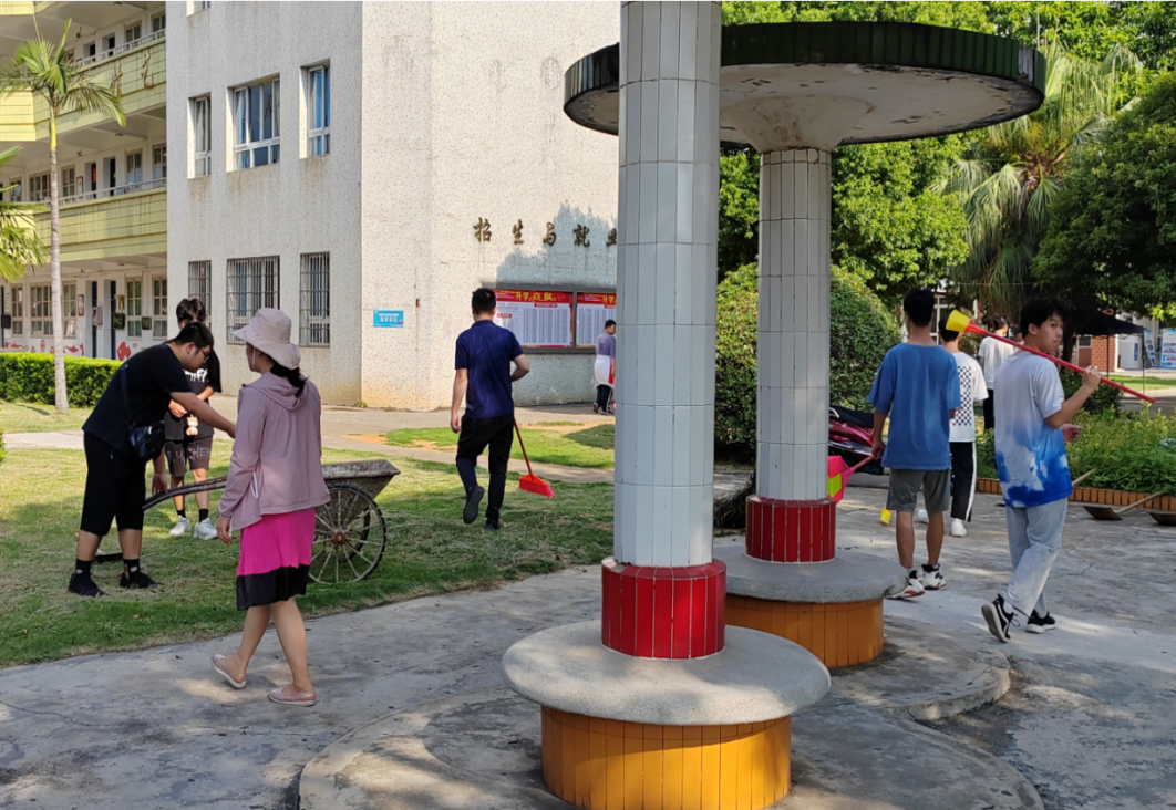 为做好开学前的校园环境卫生准备工作,以优良的校容校貌迎接新生及家长。机电工程系党支部扎实推进“我为群众办实事活动”,于9月2日上午开展志愿者服务——校园清洁活动。
