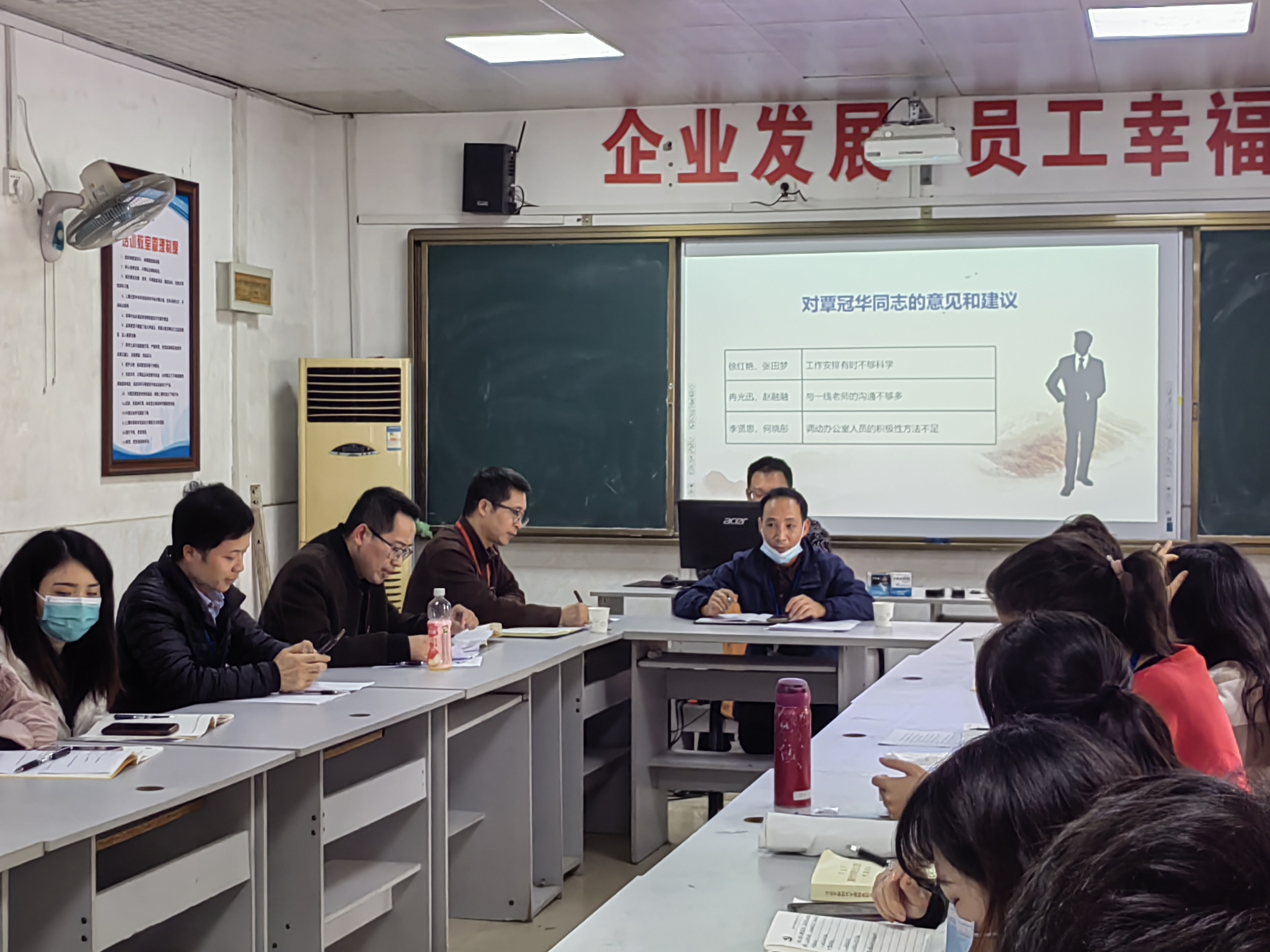 最后,校党委书记廖增勇作对会议进行点评并作指示讲话,对本次组织生活会的高效开展给予肯定,并要求全体党员在会后要针对查摆出的问题制定整改措施并加以落实,支部要做好监督工作,并及时公开监督情况,对于相同的问题,需要真正去整改到位,下一年不希望再出现相同的问题。廖增勇书记还对全体党员做了年前集体廉政警示教育。