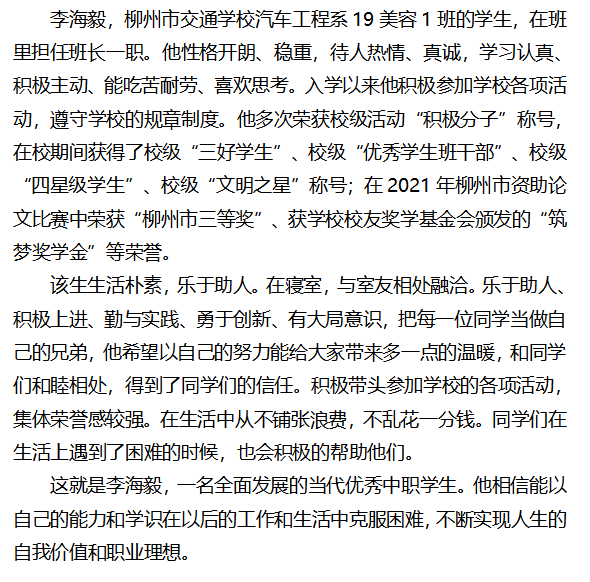 争当一名红色标兵|交校优秀学生展示之二--校友筑梦奖学金获得者汽车工程系19美容1班李海毅