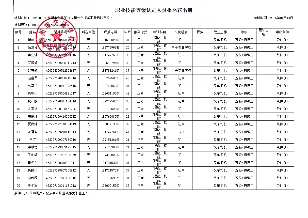 柳州巿交通学校2025年职业技能等级认定 计划名称“LZ2510-09B柳州市交通学校(柳州市振华职业培训学校)” 职业技能等级认定人员报名资格公示
