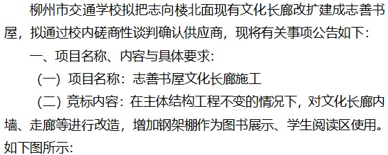 柳州市交通学校校内磋商性谈判遴选志善书屋文化长廊施工方公告