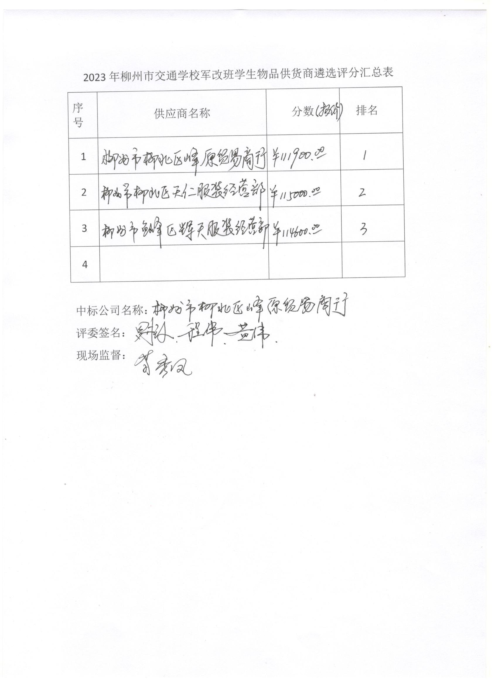 柳州市交通学校就2023年军改班学生物品供货商进行遴选,现将遴选结果正式公布如下: