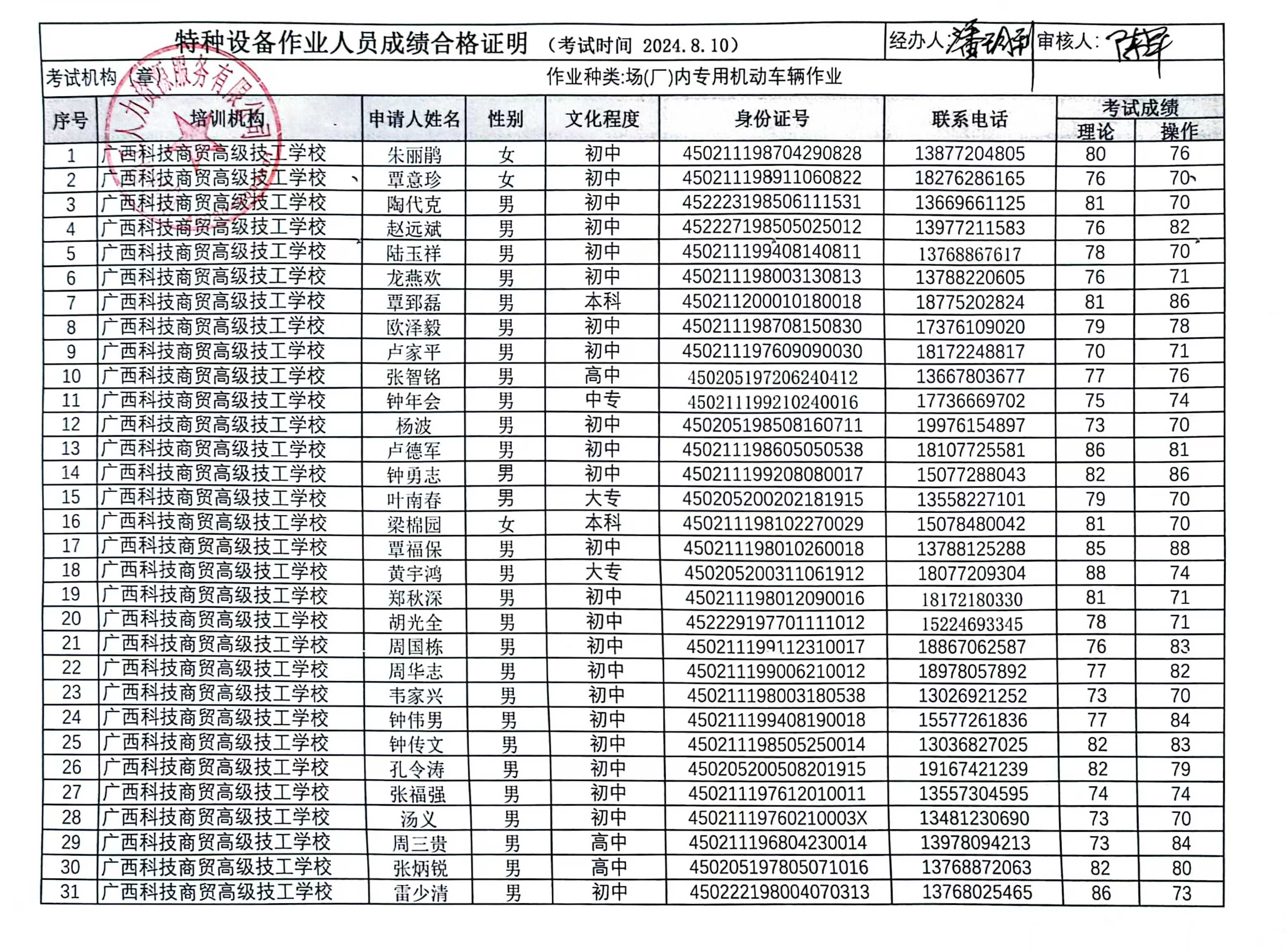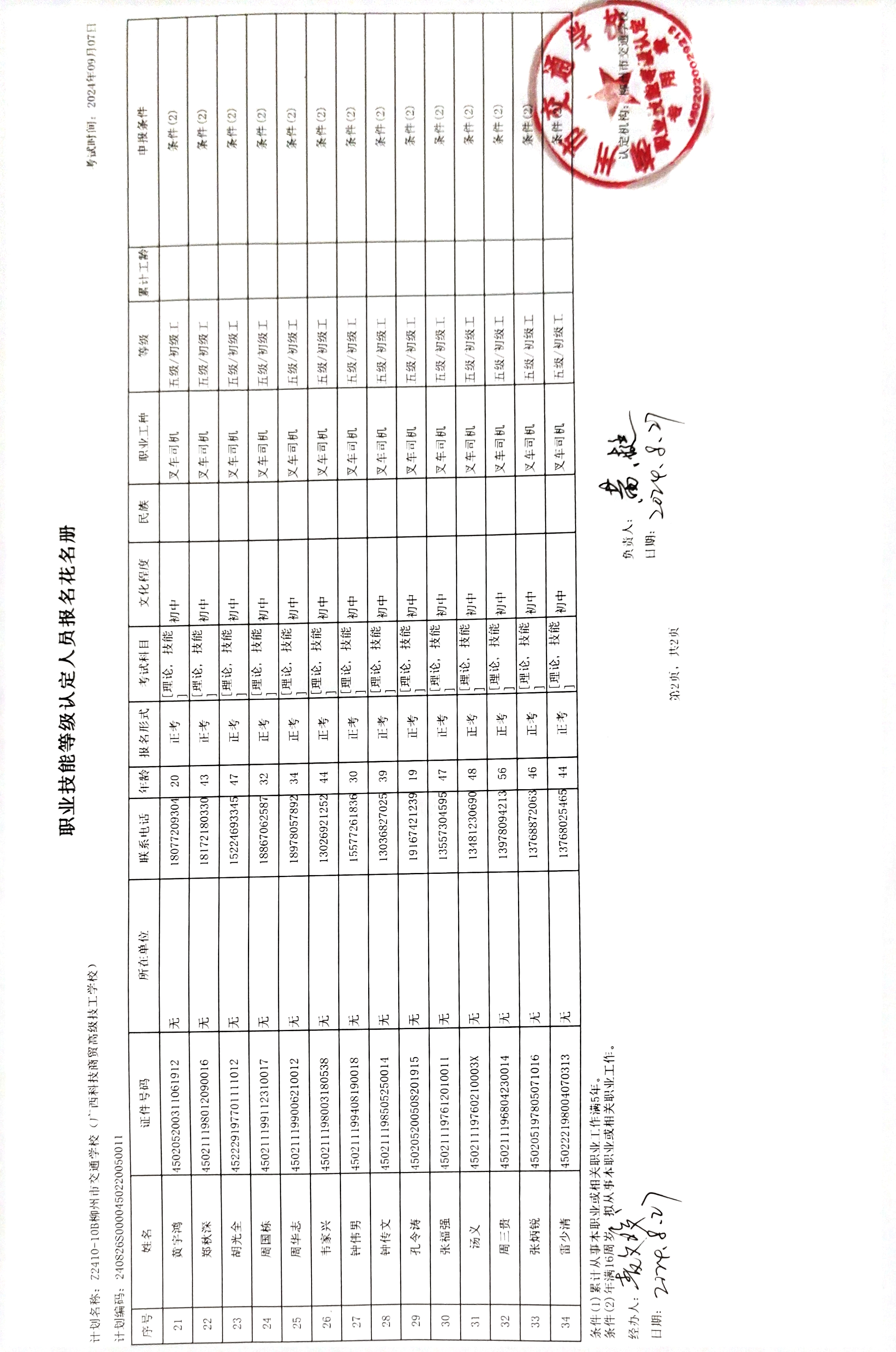 柳州市交通学校职业技能等级认定2024年LZ2410-10B柳州市交通学校(广西科技商贸高级技工学校)职业技能等级认定人员报名资格公示