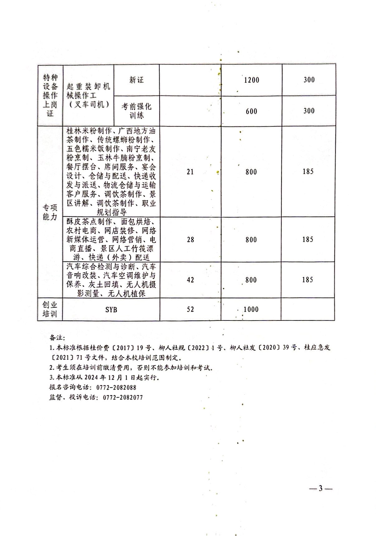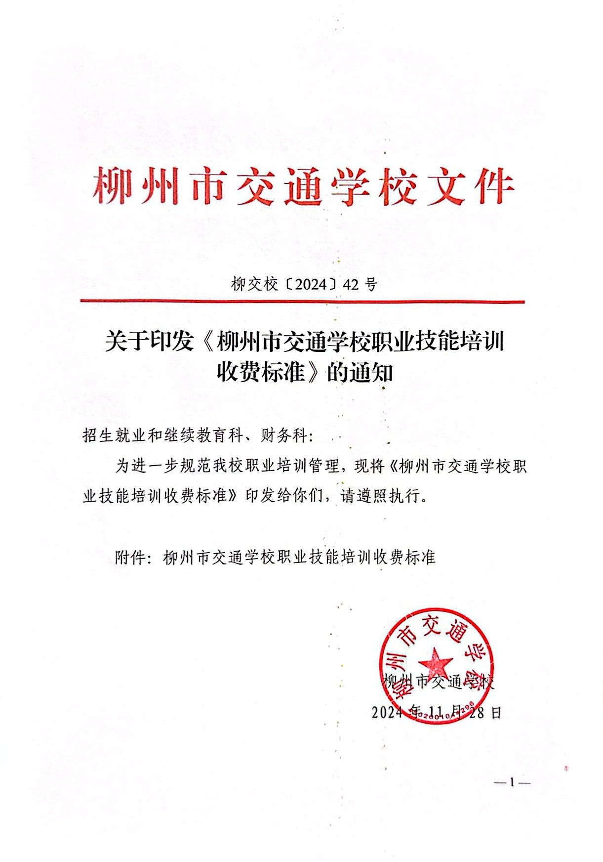 关于印发《柳州市交通学校职业技能培训收费标准》的通知