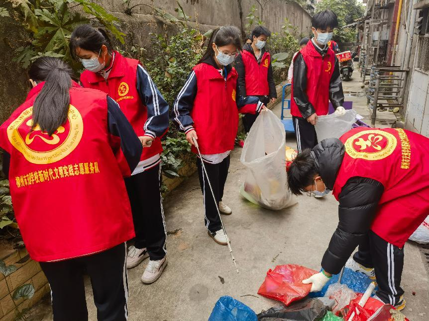 活动中,志愿者们充分展现出不怕苦、不怕累的精神。大家手持扫帚、铲子、垃圾袋等劳动工具,认真清理社区道路上的垃圾、花坛里的杂物以及墙壁上的小广告。哪怕是藏在角落里的烟头、纸屑,也逃不过他们的 “火眼金睛”。社区各角落都有着“志愿红”留下的身影。经过大家的共同努力,社区的环境焕然一新,道路变得干净整洁,花坛里的花草也似乎在春风中点头,为同学们的辛勤付出点赞。