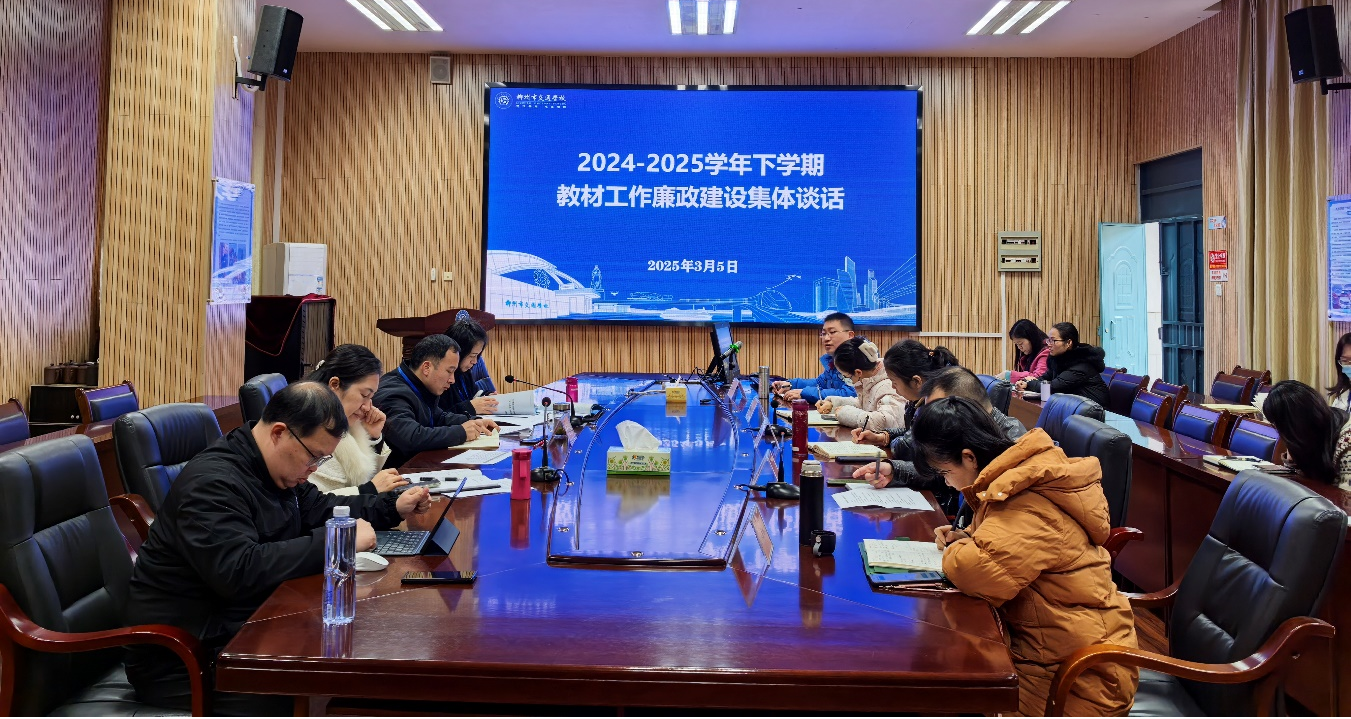 为进一步强化教材工作廉政风险防控,规范教材建设与管理,营造风清气正的育人环境,3月5日下午,罗柳健副校长在第二报告厅开展2025年春季学期教材工作廉政建设集体谈话,教务科研科主任、副主任、教材工作科员以及各系部主任、副主任及教学干事参加集体谈话。