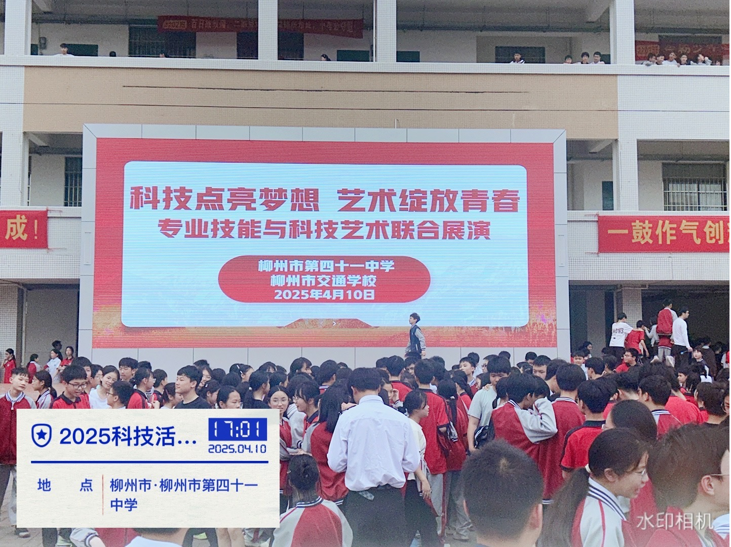 为促进学生综合素质全面发展,加强校际交流合作,4月10日下午我校与柳州市第四十一中携手举办了一场精彩绝伦的专业技能与科技艺术联合展演。本次活动以“科技点亮梦想,艺术绽放青春”为主题,吸引了师生们参与,现场气氛热烈非凡。