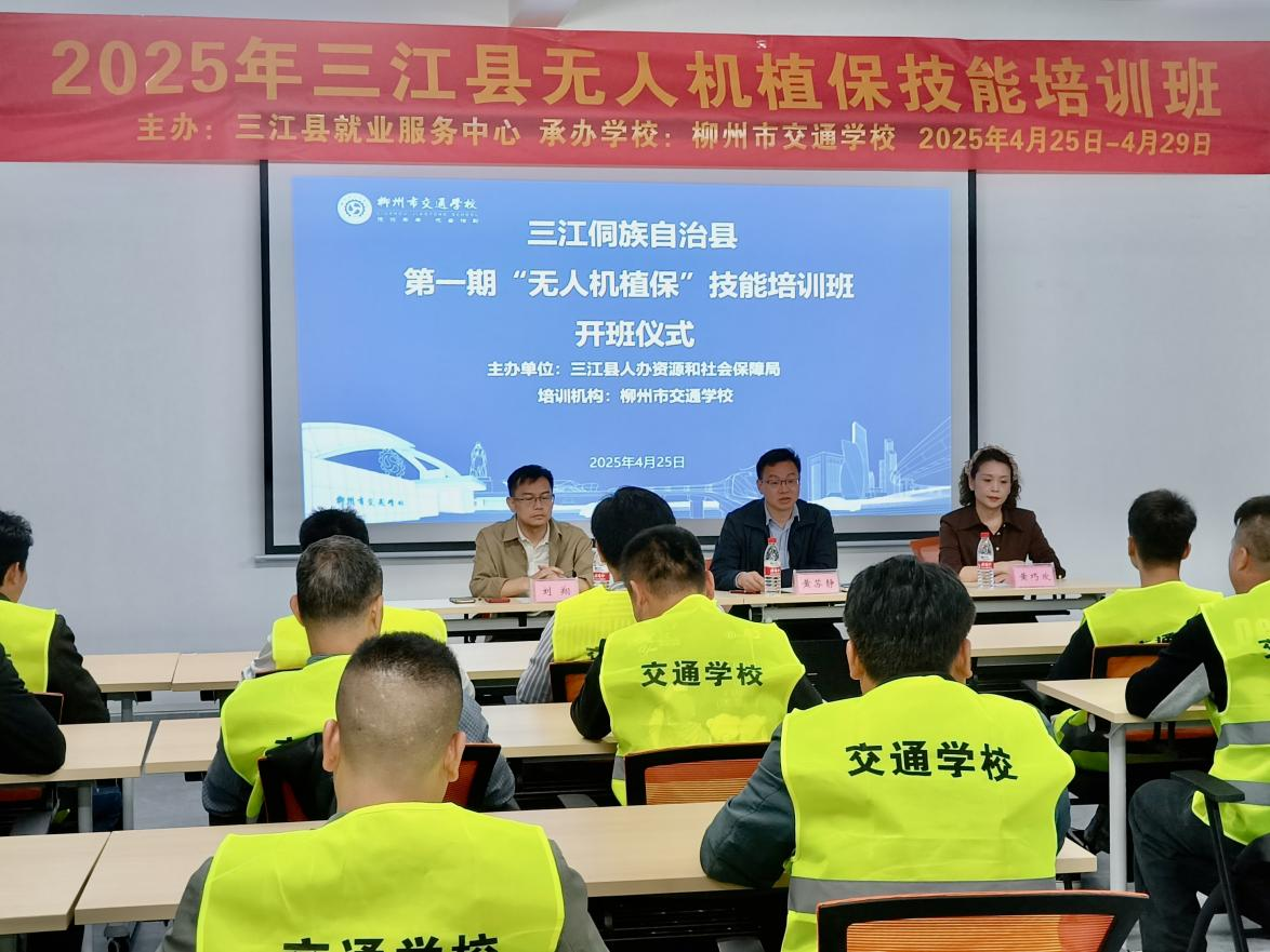 在乡村振兴与低空经济蓬勃发展的时代浪潮下,4月25日,柳州市交通学校携手三江侗族自治县人社局,在三江县成功举办无人机植保技能培训班。