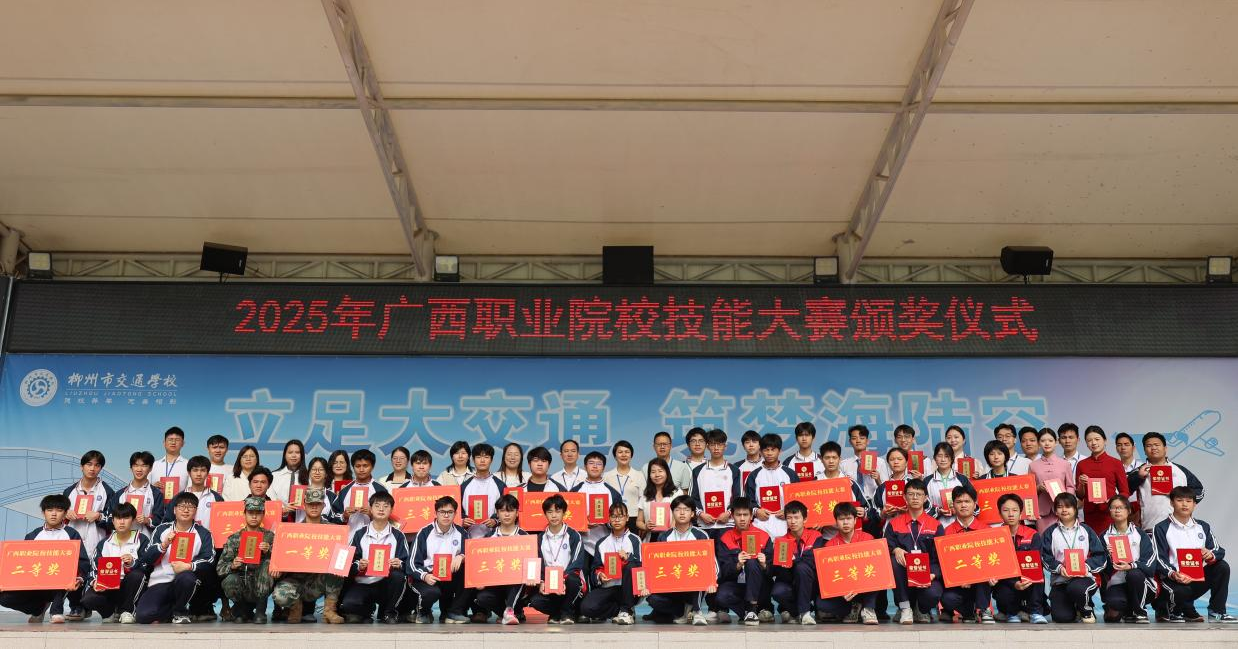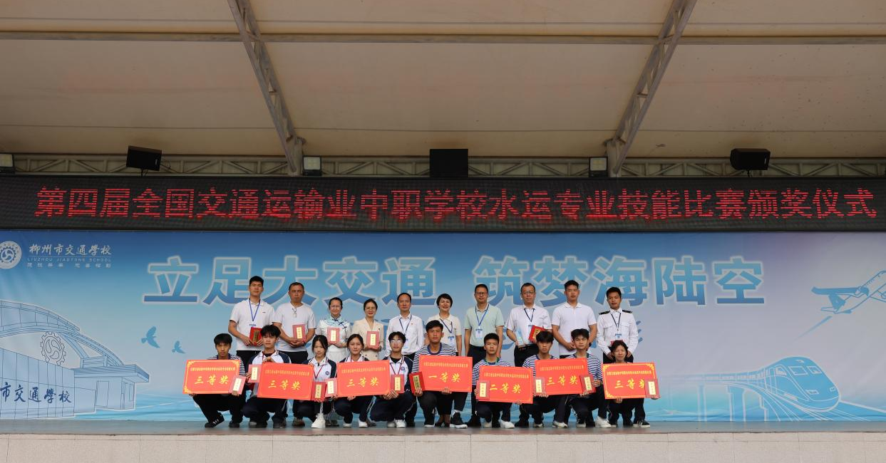 为表彰在2025年广西职业院校技能大赛和第四届全国交通运输业中职学校水运专业技能大赛中表现优异的个人、团队及相关指导老师,柳州市交通学校于2025年4月28日在学校操场隆重举行了颁奖仪式。学校党委副书记梁汉飞、副校长周轶群、副校长罗柳健出席,仪式由教务科研科科长潘雪玲主持。