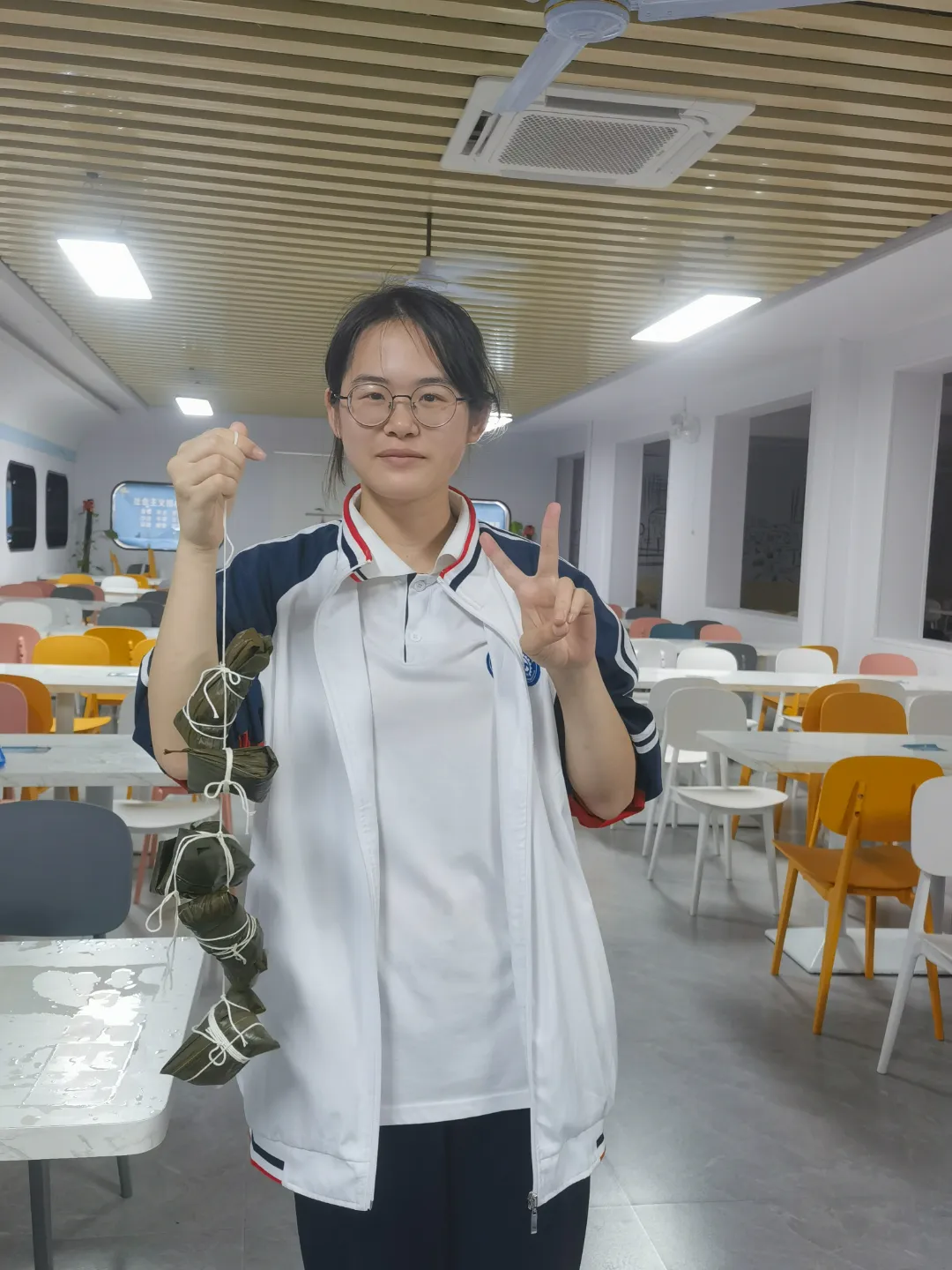 活动当天,学校食堂早早地准备好了糯米、粽叶、绿豆、猪肉等丰富多样的食材,几位擅长包粽子的食堂阿姨为学生们示范包粽子的步骤。只见她们手法娴熟,将粽叶卷成漏斗状,填入适量的糯米和馅料,再用棉线紧紧缠绕,不一会儿,一个个棱角分明、饱满可爱的粽子就成型了。