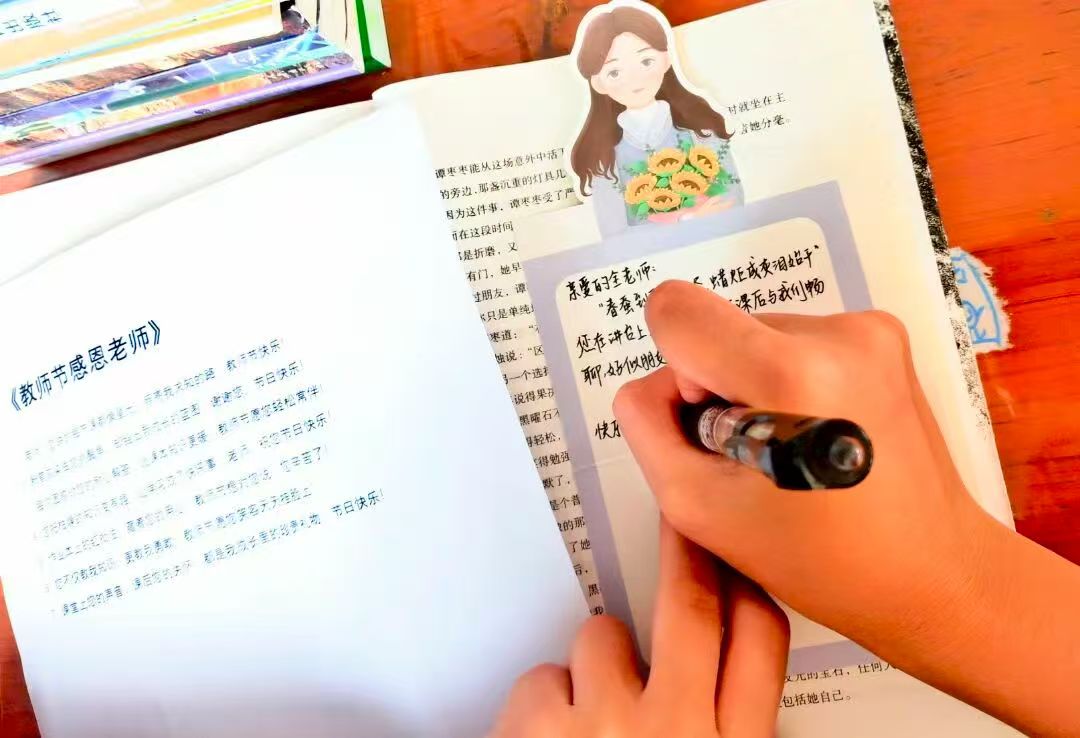 桌前,学生们执笔的姿态专注得像在雕刻时光。笔尖划过纸面,“沙沙” 声是独属于此刻的韵律,如同现代诗里的韵脚:“您是课上跃动的星,是课后温软的风,把知识的种子,种进我们懵懂的梦。” 他们写老师在讲台上的神采,写老师课后答疑时的耐心,字里行间,是对老师无限的感激与崇敬。为了让贺卡更具温度,学生们化身 “艺术诗人”。他们用贴纸点缀出星河,用彩笔勾勒出笑脸,让每一张贺卡都成了独属于老师的 “限量版诗集”。阳光透过窗户洒在他们专注的侧脸上,那一刻,青春与感恩的笔触,在卡纸之上,也在岁月之间,轻轻晕染。