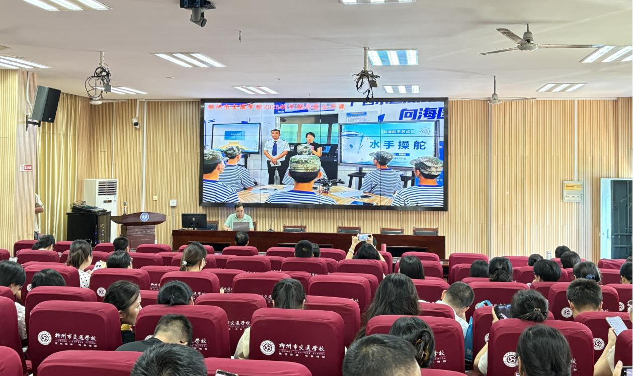 舵轮转动,浪花翻涌在巨幕之上——这并非远洋货轮行驶在深海之中,而是柳州市交通学校在“船舶模拟驾驶舱”实训室开展的示范公开课课堂上的一幕。