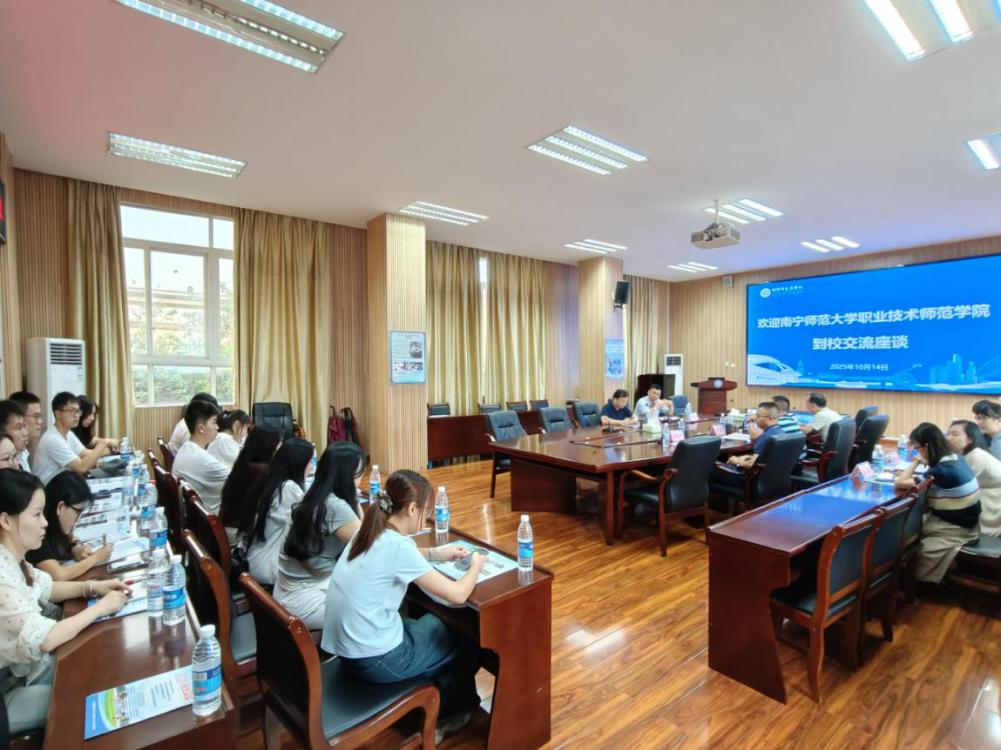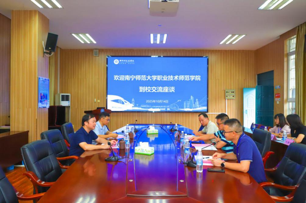 2025年10月14日南宁师范大学职业技术师范学院院长、教授陈良带队一行16人到学校开展见习活动。学校校长黄䶮携相关领导一行8人进行了接待。
