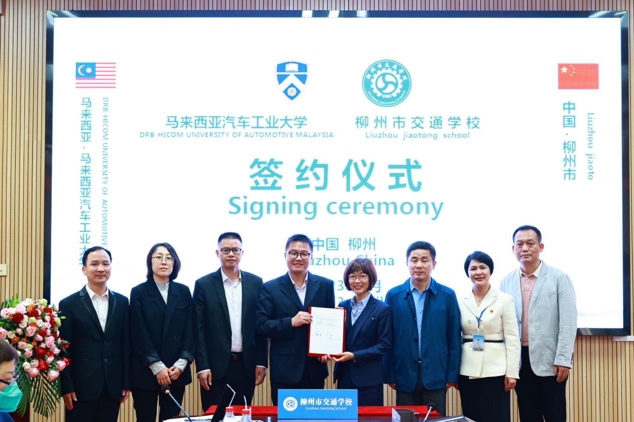2023年4月12日,与马来西亚汽车工业大学、马来西亚马六甲技术大学签订合作协议,挂牌成立“柳州市交通学校-马来西亚汽车工业大学、马来西亚马六甲技术大学优质生源基地”;与马来西亚国家能源大学共建“国际化产教融合人才培育中心”。联合马来西亚全国职业工友会、职业工友会职业技术学院及唐风国际教育集团,揭牌成立中马“中文+职业技能人才培育中心”。该中心以“中文+职业技能”为核心培养模式,开展“中文+”人文交流活动,通过开设中文语言课程、组织中国传统文化体验活动,帮助马来西亚学生提升中文水平、了解中国文化;另一方面开展职业技能交流活动。
