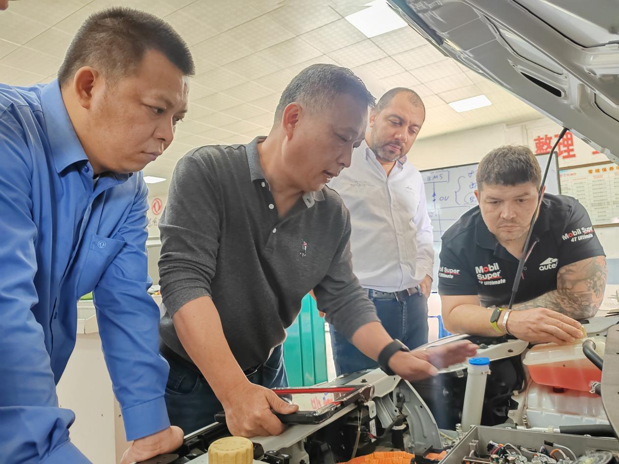 以“标准为基、人才为核”,联动龙头企业打造“职教-产业”协同出海模式。与东风柳州汽车有限公司延续19年深度合作,将合作维度从国内技术培训、标准开发升级为“技术出海”协同:当前合作的3个项目合同金额达178万元,覆盖海外商务车(星海V9)、乘用车(星海ST增程、SX5G增程、雷霆410/500)共5款新车型售后技术培训,及智能网联技术诊断维修手册开发。此举不仅为地方汽车产业拓展海外市场提供核心技术支撑,更将前期积累的院校资源、师生能力、国际标准转化为产业赋能实效,树立起汽车产业前沿技术“职教出海”的标杆,形成“基础-能力-标准-产业”的闭环发展体系。