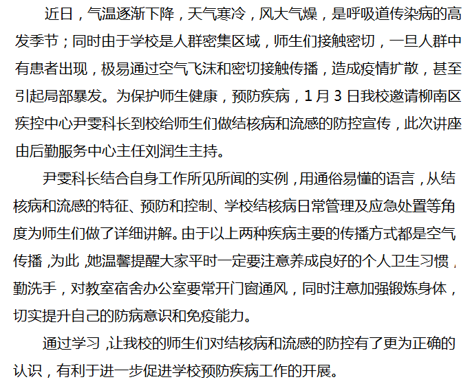 柳南区疾控中心专家到校做结核病和流感防控宣传
