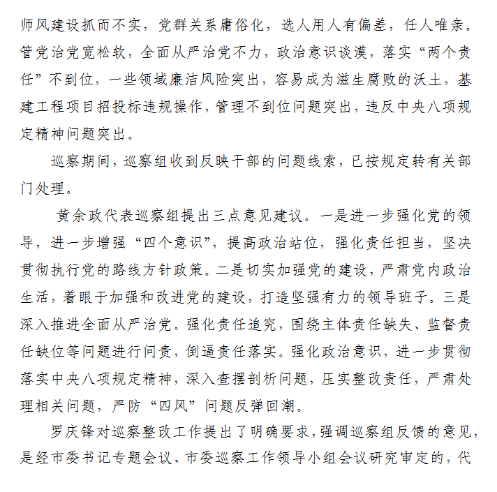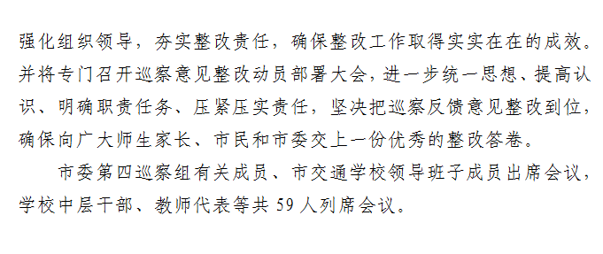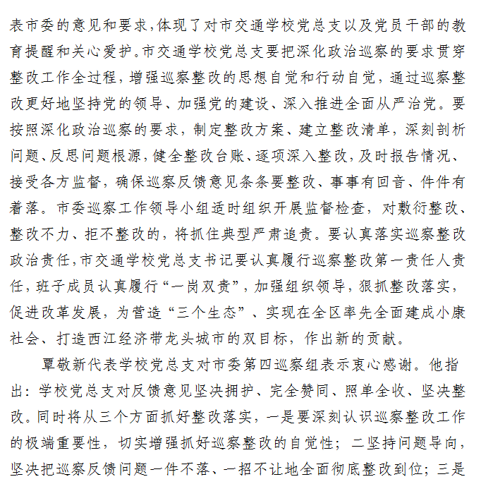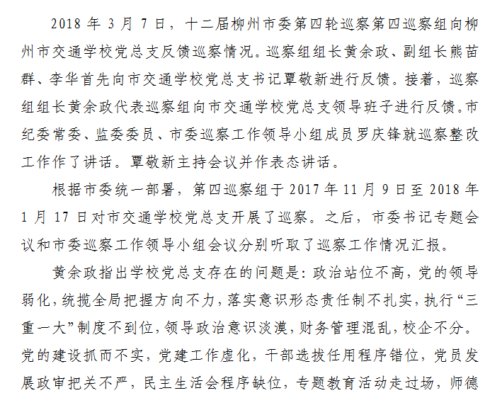 柳州市委第四轮巡察第四巡察组向柳州市交通学校党总支反馈巡察情况