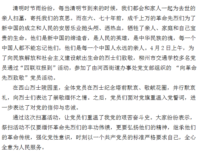 柳州市交通学校党员参加“四联双报到”“向革命先烈致敬”活动