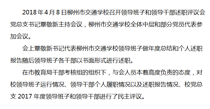 柳州市交通学校召开2017年度领导班子和领导干部述职评议会