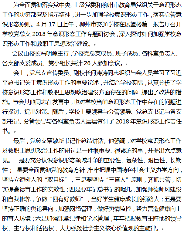 柳州市交通学校党总支召开2018年意识形态工作专题研讨会