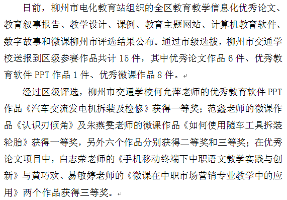 柳州市交通学校教师在2017年全区中小学教育教学信息化优秀作品市级评选活动中喜获佳绩