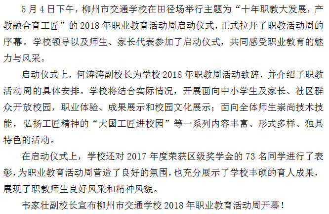 柳州市交通学校2018年职业教育活动周正式启动