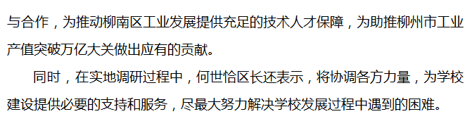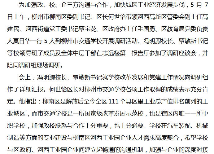 加强政校企沟通与合作 助推经济快速发展 ——柳南区区长何世恰到柳州市交通学校开展实地调研活动