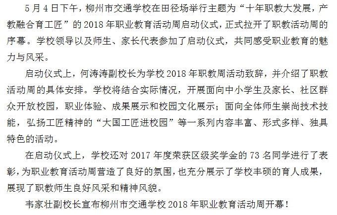 柳州市交通学校2018年职业教育活动周正式启动