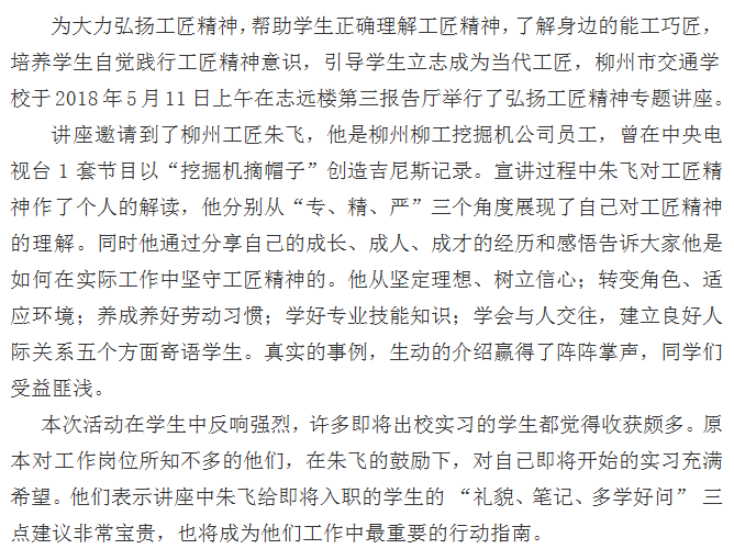 弘扬工匠精神 成就出彩人生
