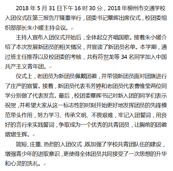 拥抱新时代 践行新思想 争做好青年 ——柳州市交通学校举行入团仪式
