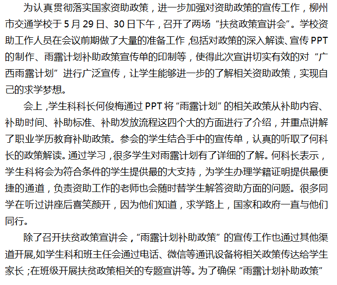 同心共筑求学梦 “雨露计划”润心田 ——记柳州市交通学校“扶贫政策宣讲会”