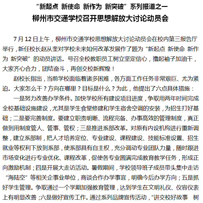 柳州市交通学校召开思想解放大讨论动员会