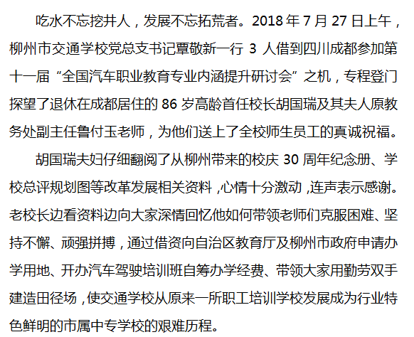吃水不忘挖井人 发展不忘拓荒者 ——柳州市交通学校领导远赴千里探望首任校长胡国瑞