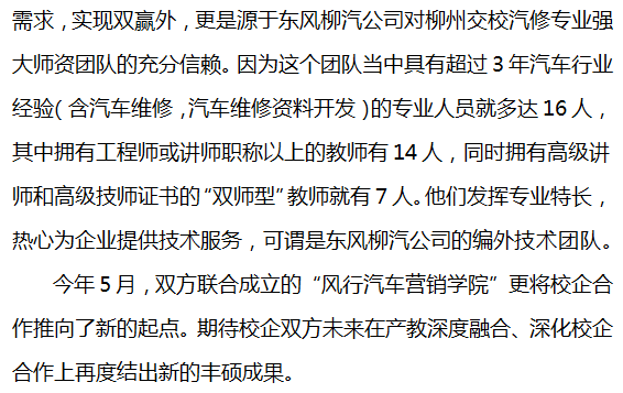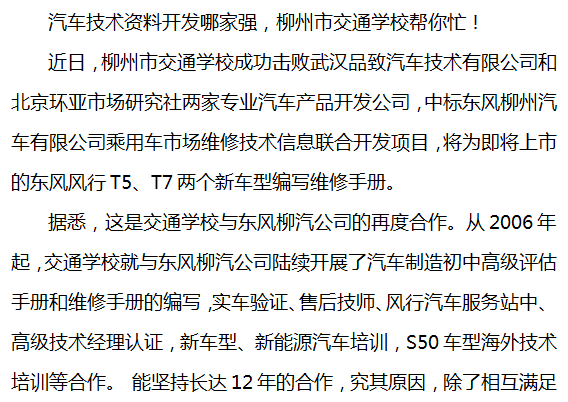 柳州市交通学校成功中标东风柳州汽车有限公司乘用车市场维修技术信息联合开发项目