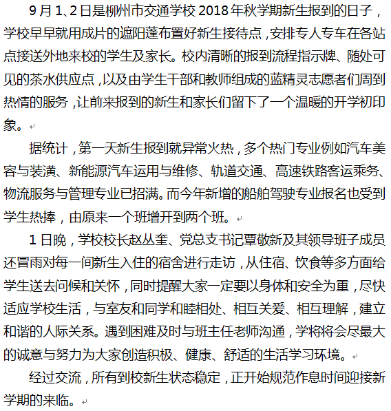 我们开学啦——柳州市交通学校2018年秋学期开学报道