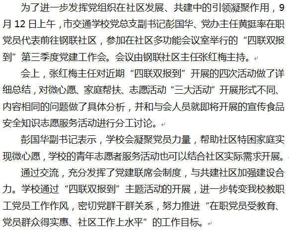 我校党员积极参与社区“四联双报到”第三季度联席会