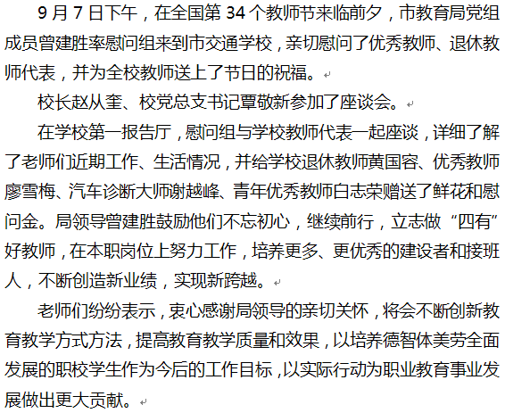 亲切关怀润心田 再鼓干劲育英才——市教育局领导到交校开展教师节走访慰问