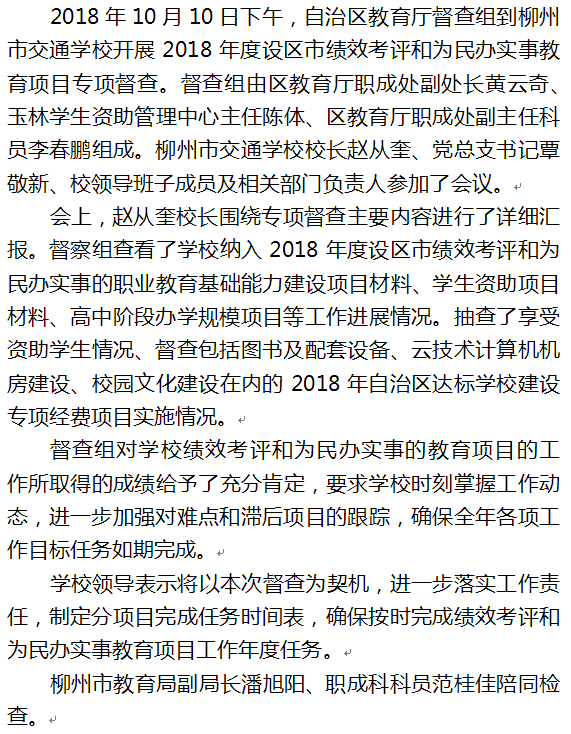 自治区教育厅督查组到交通学校开展绩效考评和为民办实事项目专项督查