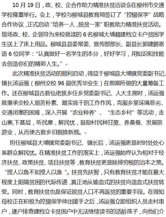 依托母校伸援手 控辍保学拔穷根 ——柳州交校优秀毕业生、柳城县大埔镇镇长汤运强心系群众解民忧