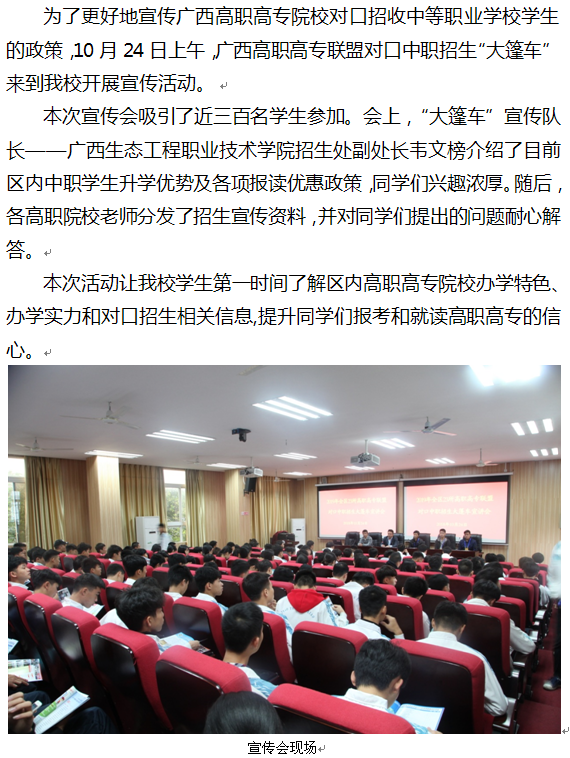 广西高职高专联盟对口中职招生“大篷车”宣传进交校