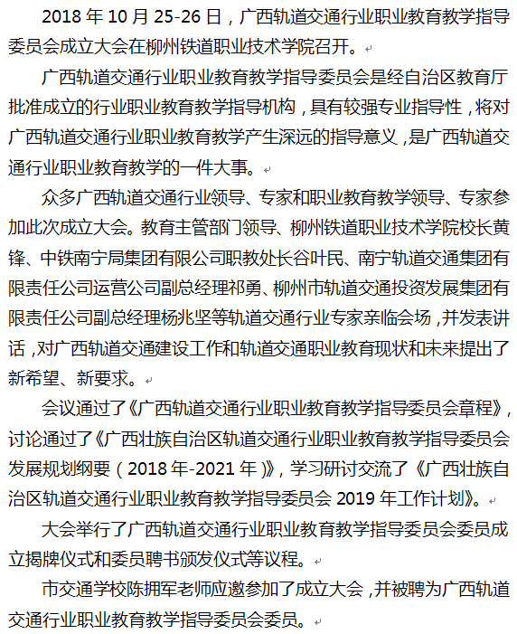 行企职教破旧砭 轨道交通谱新篇——2018广西轨道交通行业职业教育教学指导委员会成立大会报道