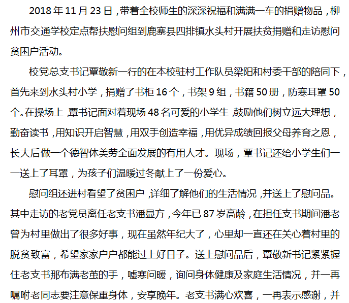 柳州市交通学校领导到鹿寨县四排镇水头村开展扶贫捐赠活动