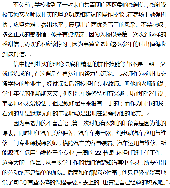 一路担当,一路成长——记柳州市交通学校优秀青年教师韦德文