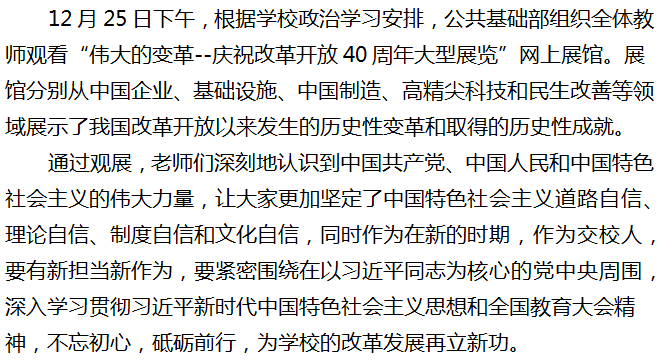 公共基础部组织全体教师观看 “伟大的变革--庆祝改革开放40周年大型展览”网上展馆