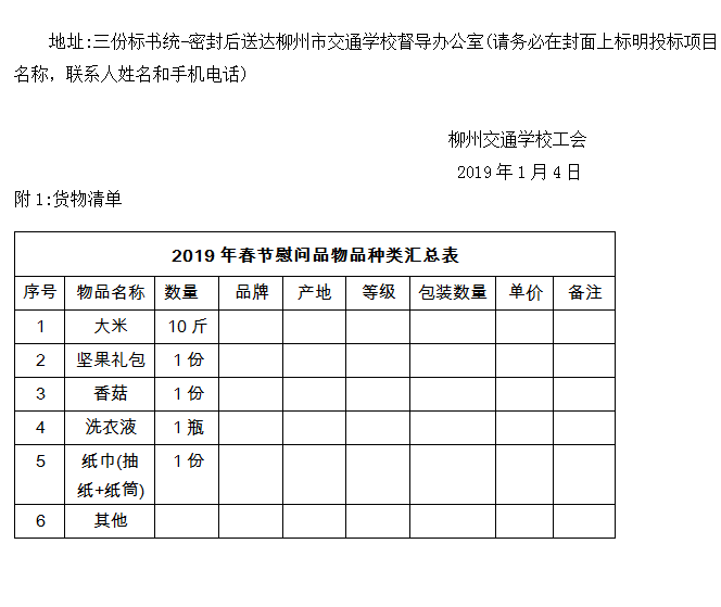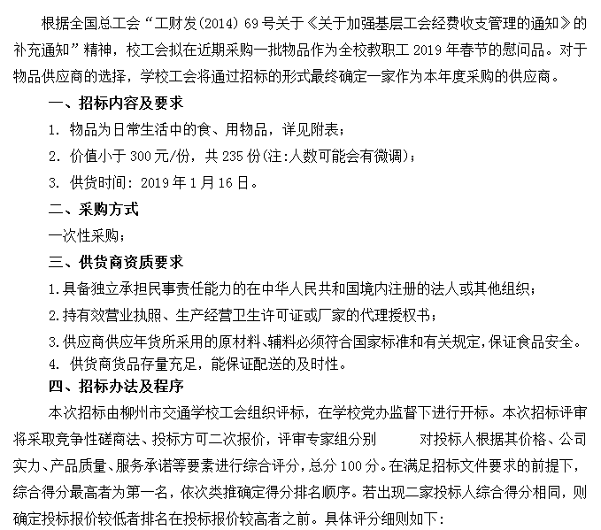 柳州市交通学校 2019年教职工春节慰问品竞争性磋商招标公告