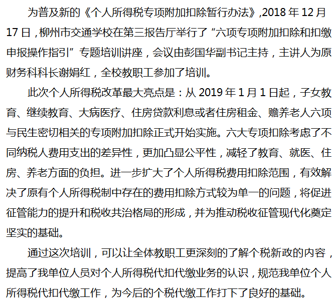 个税改革暖心人 寒冬培训普知识