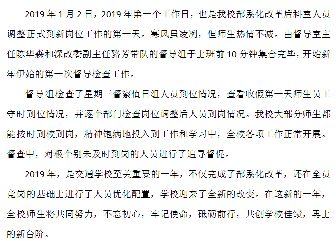 新年新气象,新岗新台阶 ——记学校2019年第一次督导工作
