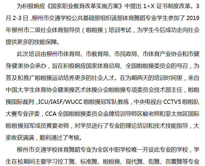 柳州市交通学校体育舞蹈专业学生参加 2019年柳州市二级社会体育指导员(啦啦操)培训考试